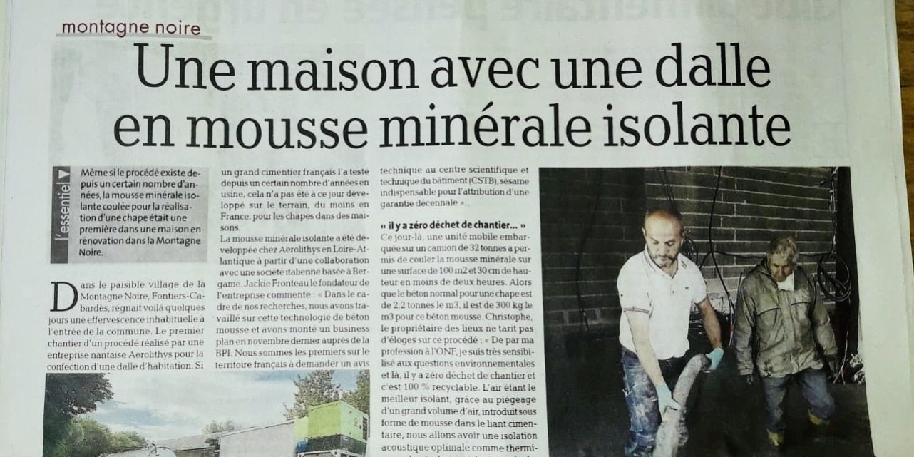 « Même si le procédé existe depuis un certain nombre d’années, la mousse minérale isolante coulée pour la réalisation d’une chape était une première dans une maison en rénovation dans la Montagne Noire. » Pour lire l’article dans l’intégralité, cliquez ici.