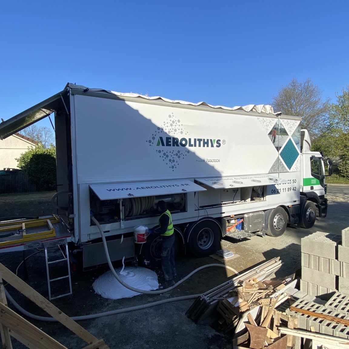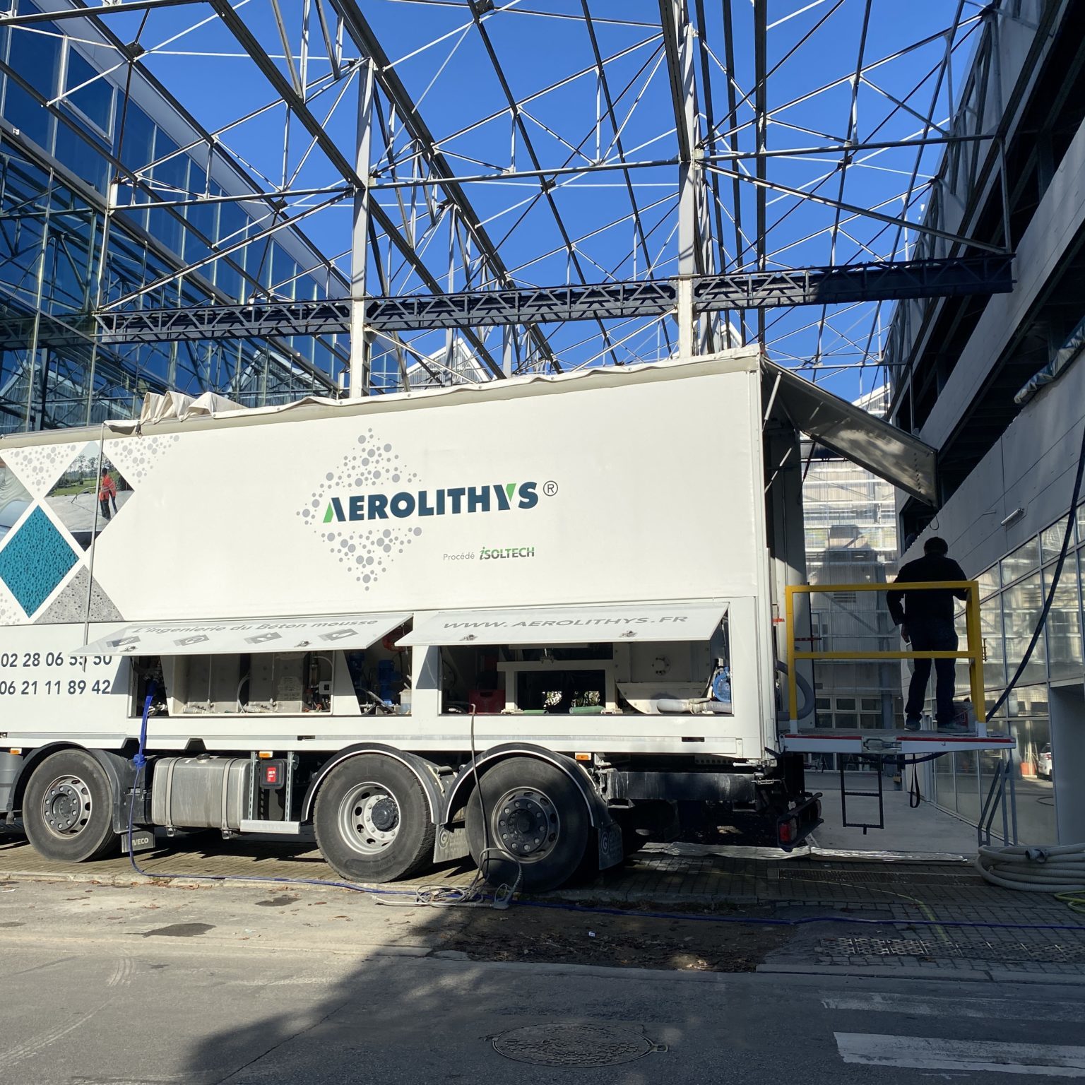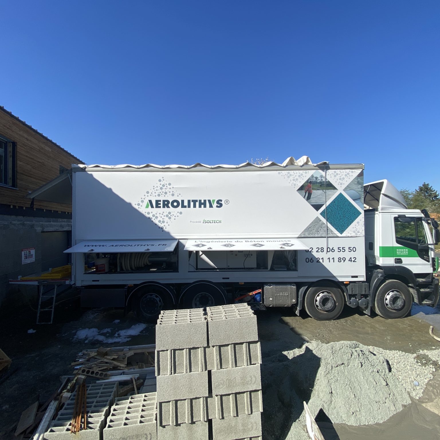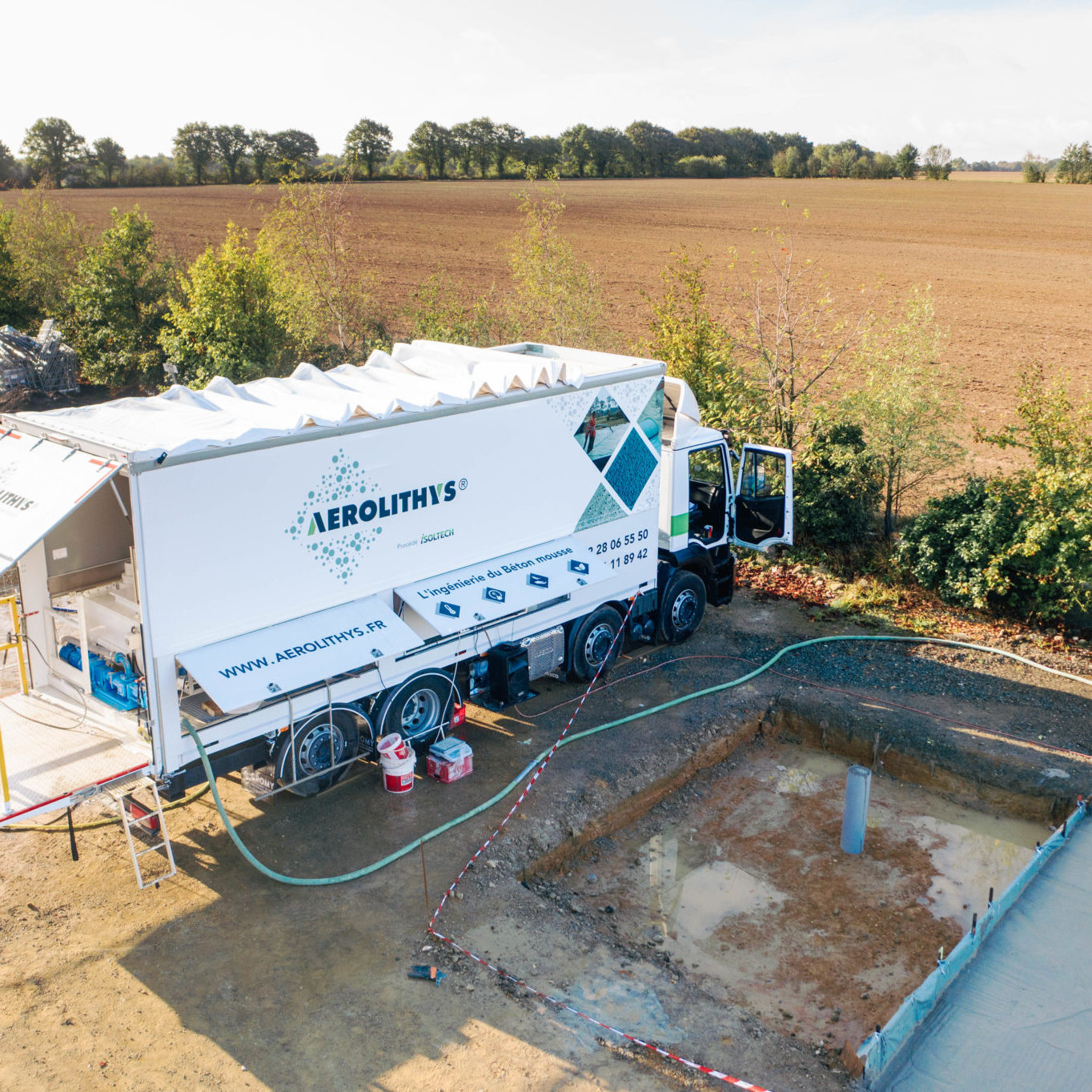 Notre unité mobile Aerolithys® fourni sur site le béton mousse léger de haute qualité destiné aux entreprises du bâtiment et de génie civil.